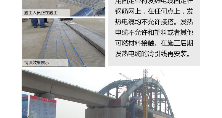 發(fā)熱電纜可以在新建筑的混凝土干燥與硬化中使用??s短混凝土干燥時(shí)間,可以縮短 整個(gè)建筑工期,帶來(lái)很大的經(jīng)濟(jì)效益。發(fā)熱電纜可以直接置于混凝土內(nèi),防止混凝土凍結(jié),加速其硬化,即使在非常寒冷的季節(jié),也可以三天就將模板撤掉。施工后期,重新接通發(fā)熱電纜電源,干燥整個(gè)建筑結(jié)構(gòu),并且在建筑過(guò)程中提供基本的供熱。