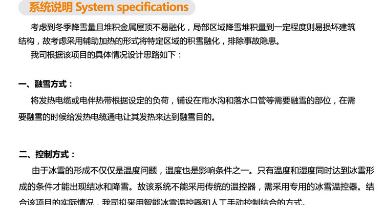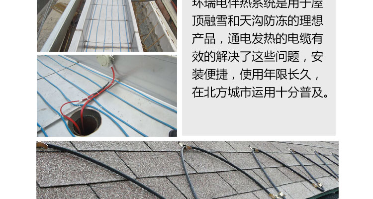 中國(guó)很多城市在冬季時(shí)常會(huì)有大面積長(zhǎng)時(shí)間的降雪,因此清除屋頂天溝的積雪就成為不可避免的工作,大量的積雪增加屋頂承重。因氣候嚴(yán)寒凝結(jié)的冰柱會(huì)給地面的行人造成諸多安全隱患,大家也在不斷尋求可靠的天溝融雪技術(shù)。
